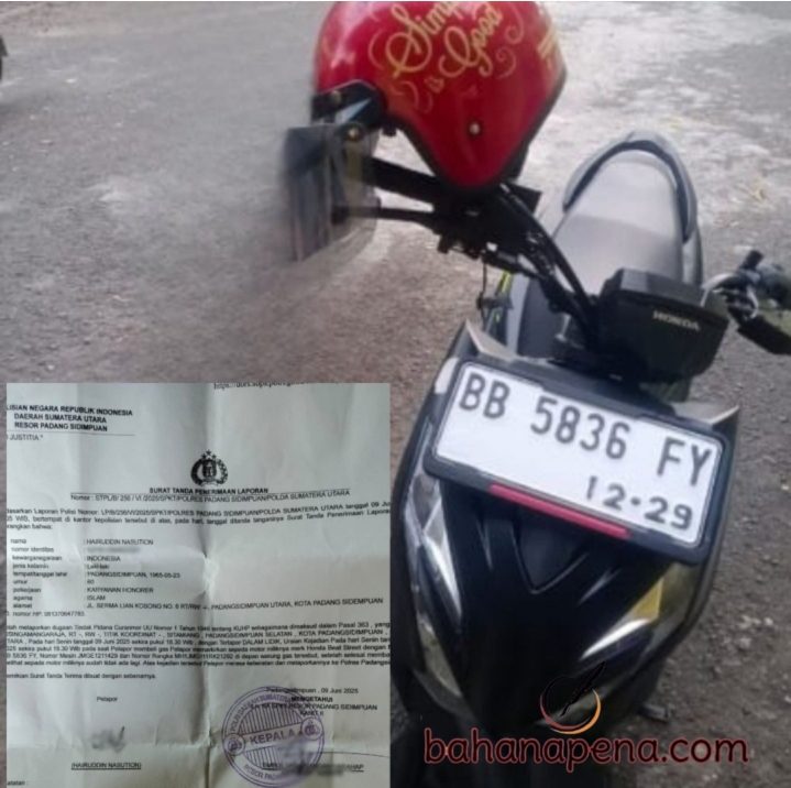 BAHANAPENA.COM | PADANGSIDIMPUAN – Seorang karyawan honorer, Hairuddin Nasution (60) warga Jalan Serma Lian Kosong, Kecamatan Padangsidimpuan Utara merasa “Syok” saat kehilangan sepeda motornya hanya dalam...